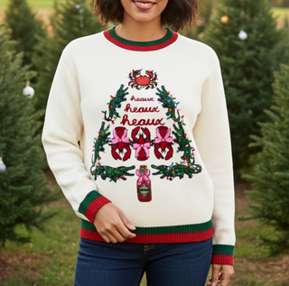 Get into the festive spirit with this popular Santa Clause sequin alligators, crawfish and crabs sweater! SASH Clothing Bar exclusive design, you won’t find them anywhere else!